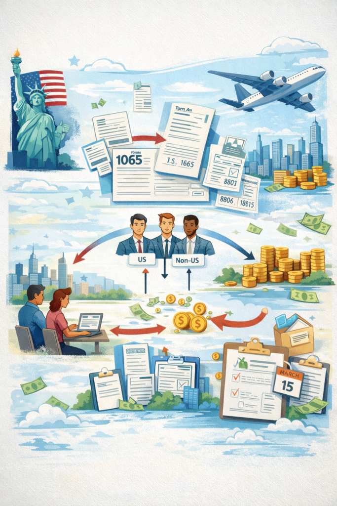 If you’re a non-U.S. owner of a U.S. multi-member LLC (taxed as a partnership) and you run the business from abroad, this guide explains when you owe U.S. tax versus when you only have U.S. filing and reporting obligations—plus how 1065, K-1, K-2/K-3, and 1446 withholding (8804/8805) actually work.