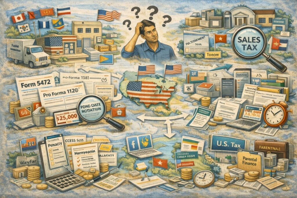 If your U.S. LLC is owned by a foreign individual or foreign company and you sell products to U.S. customers (even via a U.S. manufacturer or fulfillment partner), you may have U.S. filing obligations like Form 5472 + pro-forma Form 1120, plus sales tax registration in multiple states. This FAQ explains what’s required, what triggers U.S. income tax, and how to set up bookkeeping correctly.