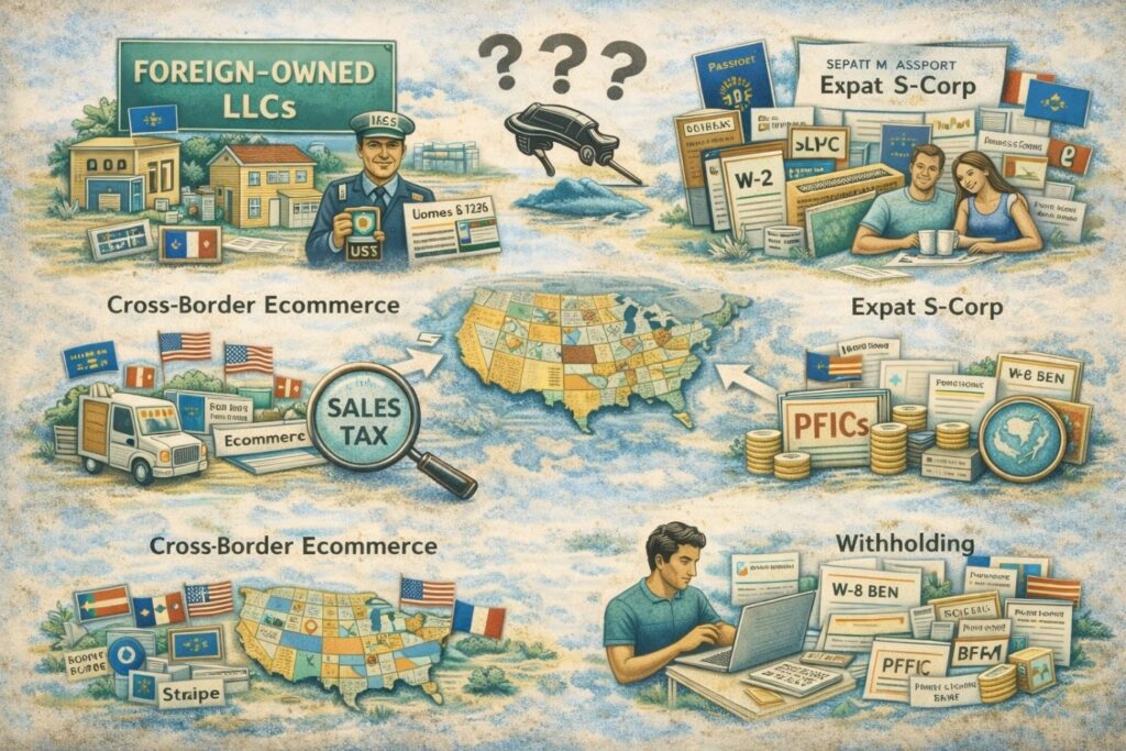 For professional review of foreign-owned LLC filings, expat S-Corp strategy, withholding exposure, sales tax setup, or PFIC and pension risk, book a consult through the scheduling link on our site.
