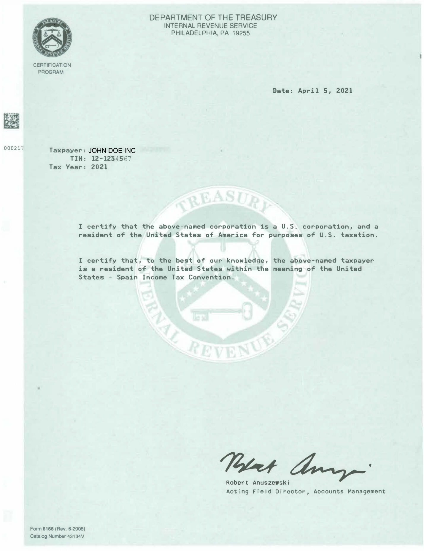 - Claim Tax Treaty, Avoid Double Taxation and Request VAT Exemption – Form 6166 – Certification of U.S. Tax Residency