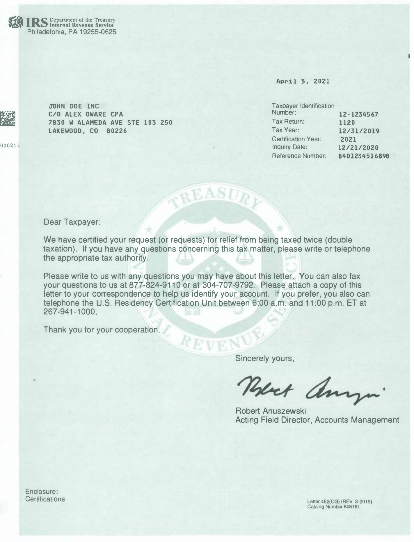 WATCH – C-Corporation: Applying for 2023 U.S Residency Certification Form 8802/6166