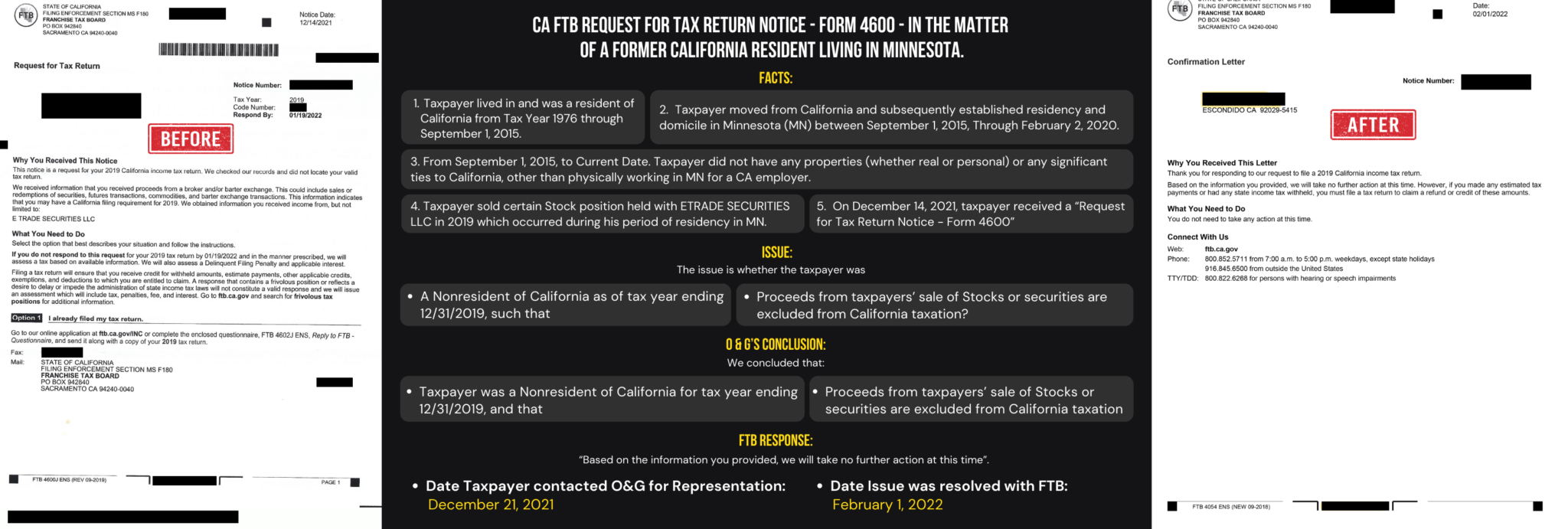 California FTB Request for Tax Return Notice – Form 4600 – In the matter of a Former California domiciled in Minnesota.